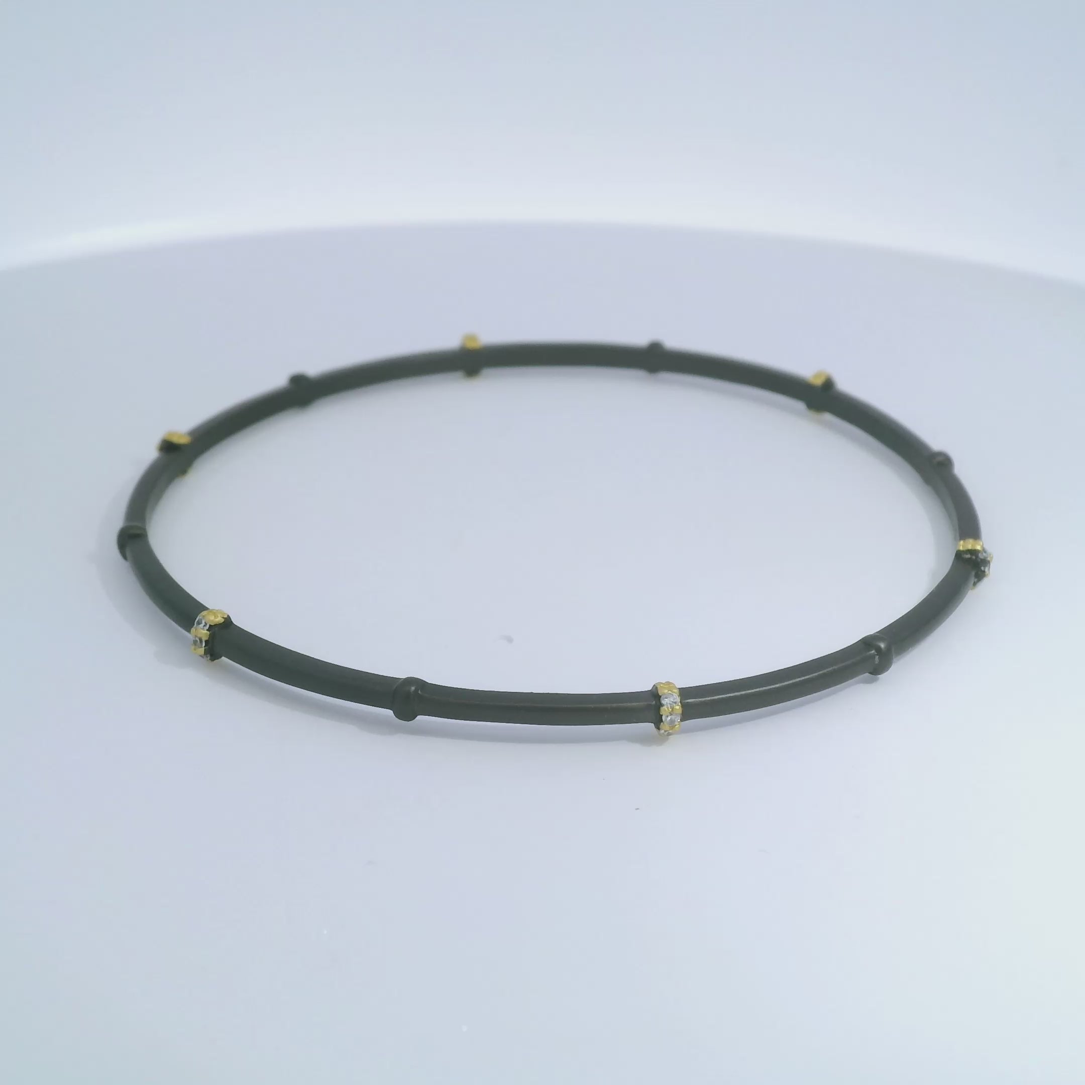 Freida Rothman Studded Eternity Hinge Bangle - Silver and Black Reverse