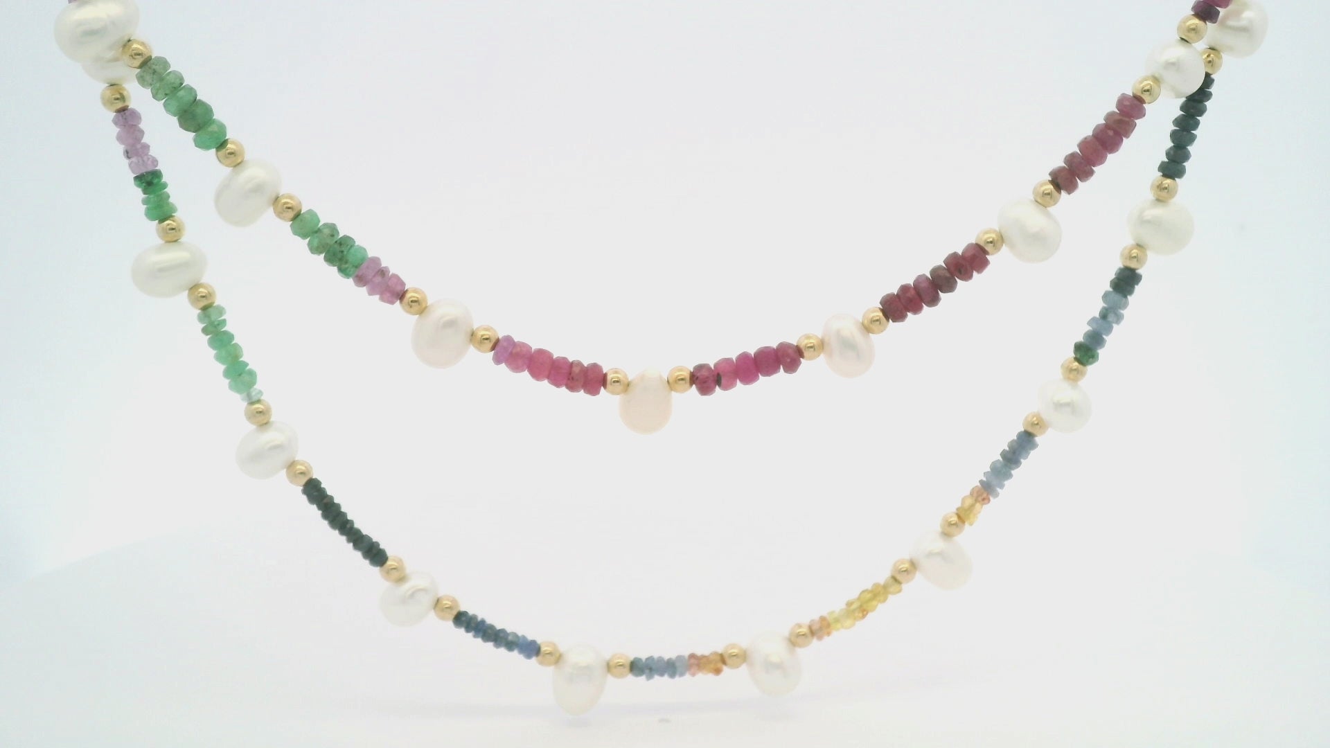 JIA JIA Dark Rainbow Sapphire Pearl Gold Bead Double Long Necklace