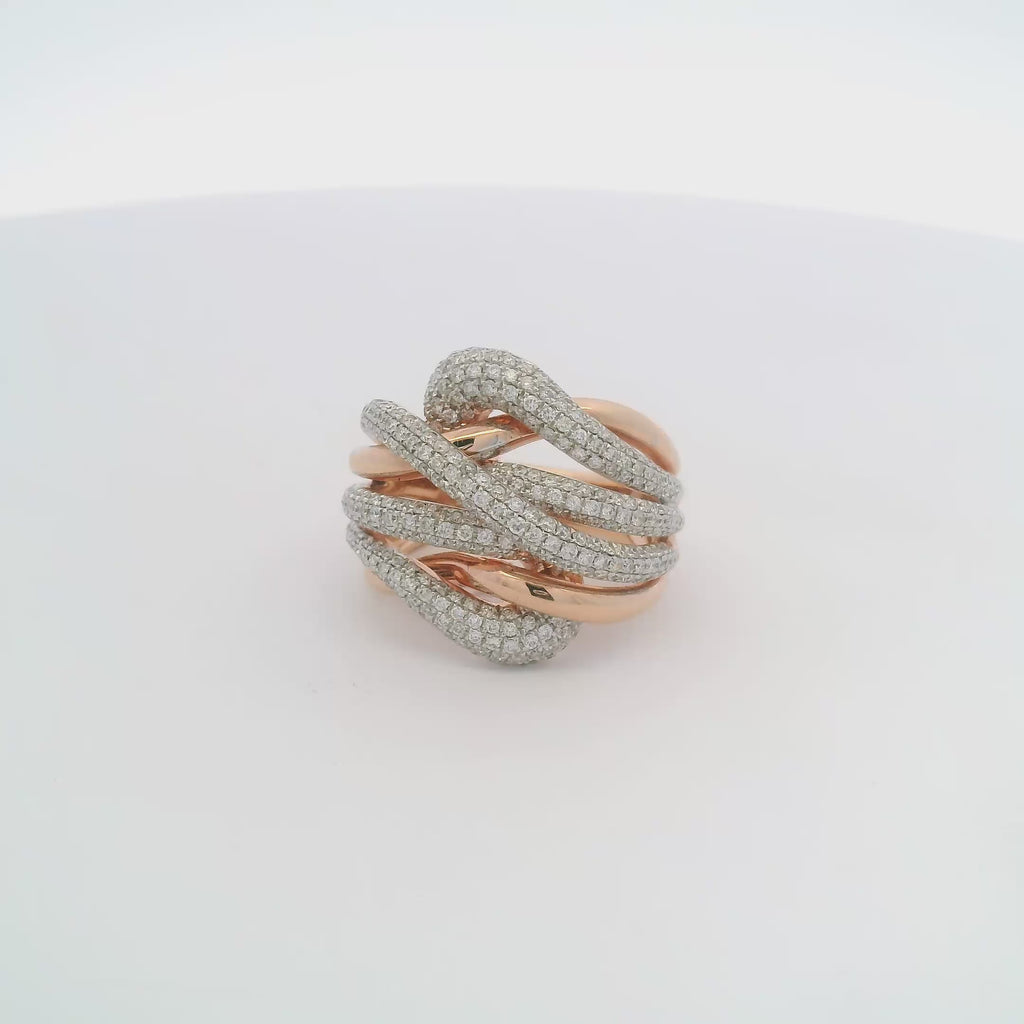 Three-Dimension Pave Diamond Rose Gold Overlapping Ring