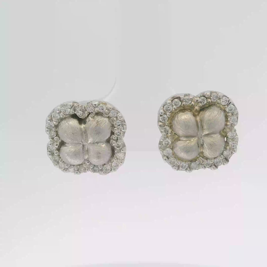 These stunning 14kt white gold floral earrings are a perfect blend of elegance and charm. Crafted with intricate detailing, they feature a beautiful flower design surrounded by .42ct of sparkling diamonds, making them an ideal accessory for any occasion.