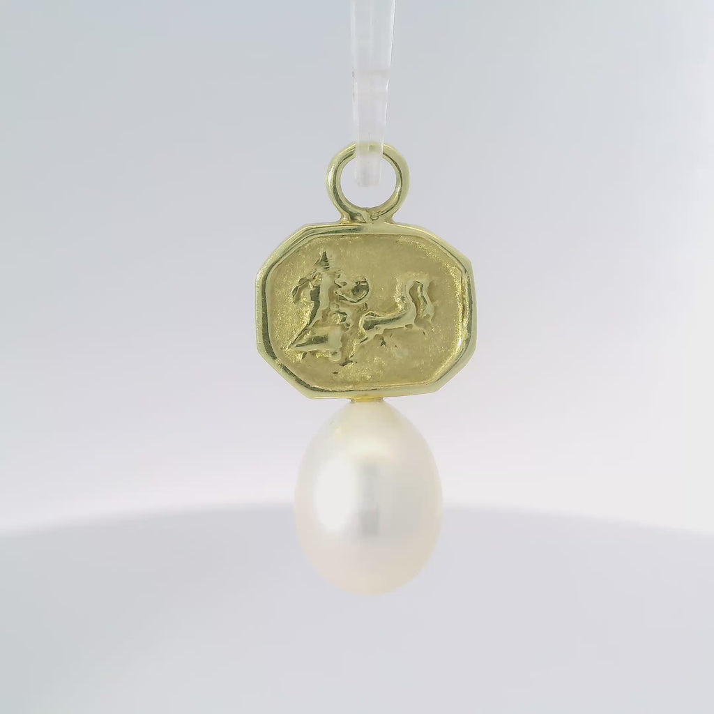 These 14kt gold with a single pearl earring charms adds a touch of sophistication to any outfit. The pearls symbolize purity and wisdom, making these charms a meaningful and stylish accessory for any occasion. Handcrafted with care and quality materials.