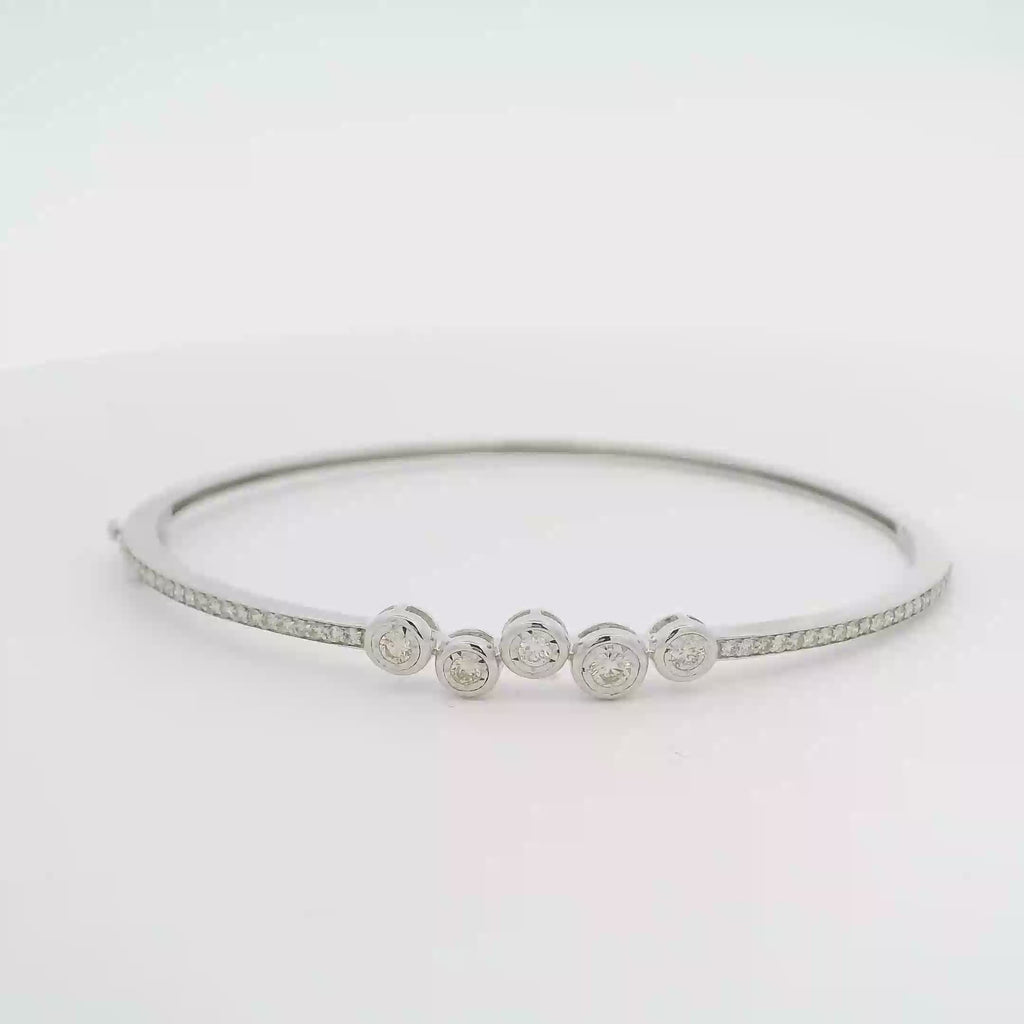 This exquisite diamond bangle is crafted in lustrous 14kt white gold. The sleek design features a series of meticulously set, 0.60cts of round brilliant cut diamonds, providing a captivating sparkle and timeless elegance.