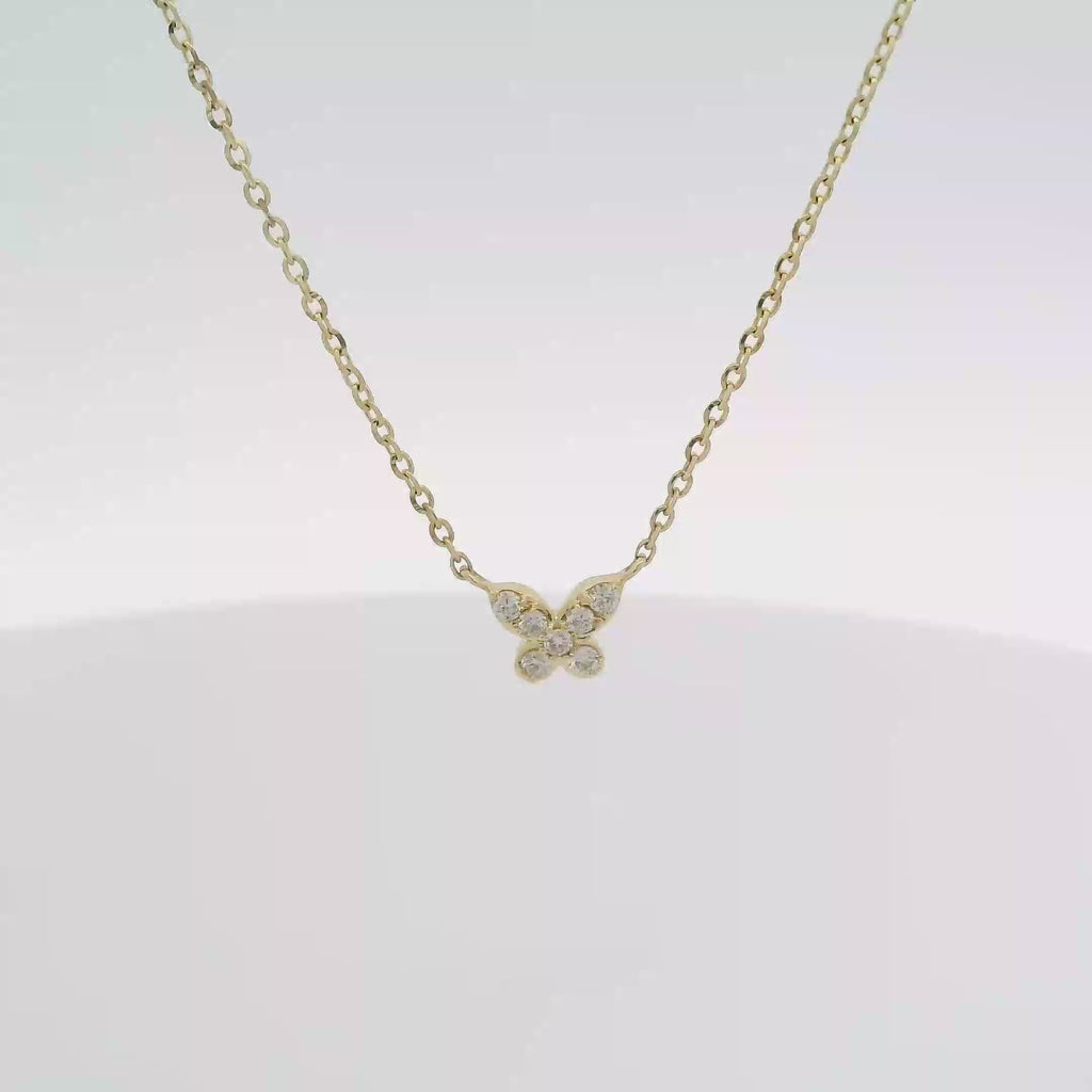 Finely crafted in 14kt yellow gold, the necklace features a dainty butterfly adorned with 0.06ct of round brilliant cut diamonds. The design exudes grace and sophistication, making it a perfect everyday piece or a thoughtful gift.