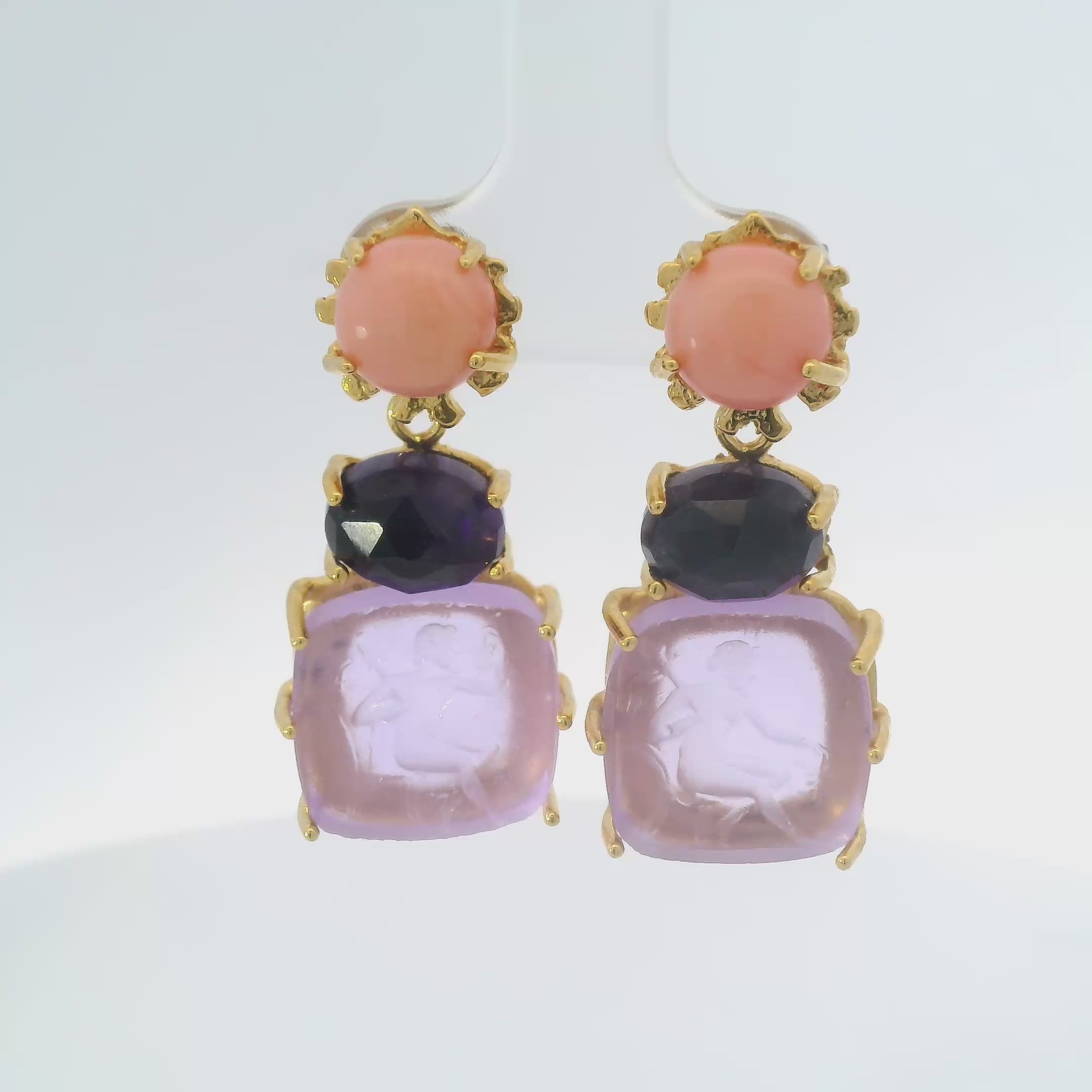 Pink Coral, Amethyst with Lavender Bacchus Intaglio