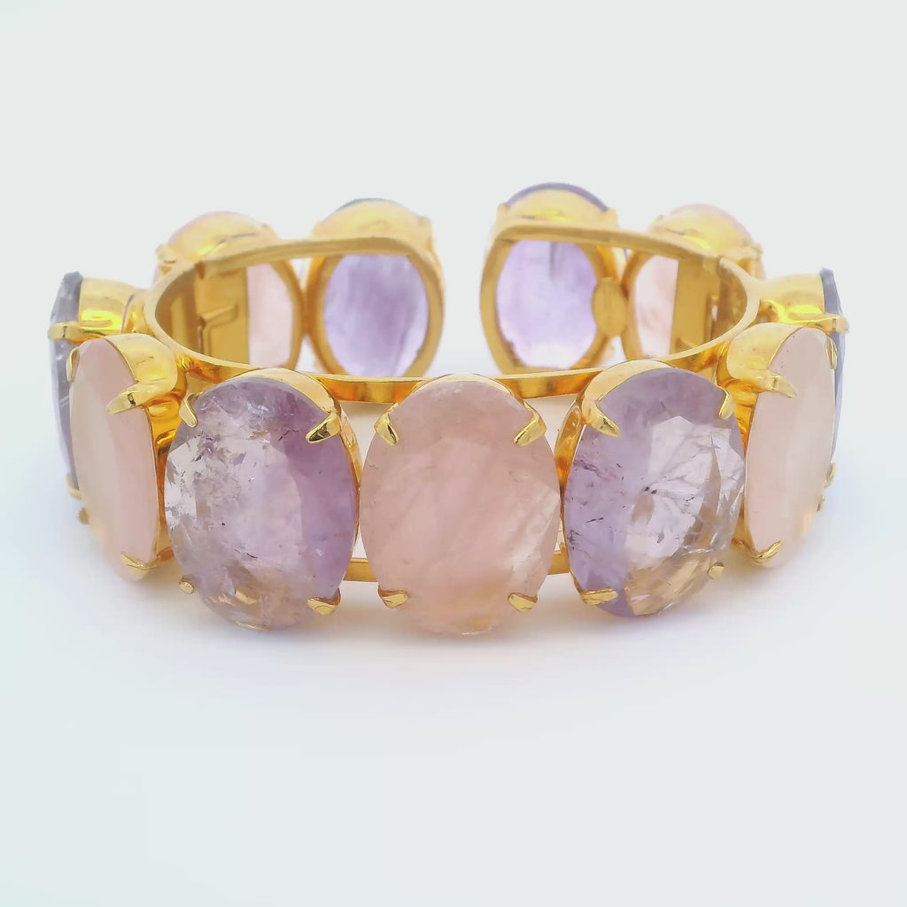 Rose Quartz and Amethyst Cuff